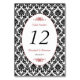 Diese Tischnummer-Karten sind ideal für alle Paare, die eine romantische Hochzeitsfeier für einen Jahrgang planen. Das Design zeichnet sich durch einen Vintagen schwarz-weißen Damast-Hintergrund mit einem dekorativen roten Rahmen mit einem verzierten floralen blühte aus und ist mit eleganten Formulierungen in Schwarz und Rot veredelt. Das einfache Design kann personalisiert sein, um Ihre besondere Veranstaltung zu Anzug und wird die perfekte Tischnummer für jedes antike Party sein, einschließlich: Brautparty, Verlobungen, Polterabende, Geburtstagspartys und vieles mehr.