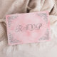 Diese elegante, Vintag inspiriert Hochzeitskartentext-RSVP-Kapselkarte zeigt den Text in einem blasssilbergrauen Drehbuch und Serif-Schriftart, gerahmt durch ein zartes Vintages Silberfolienmotiv in vier Ecken auf einem rot-rosa Aquarellhintergrund. Der Titel "UAWG" erscheint auf der einen Seite mit anpassbarem Text auf der anderen Seite.
