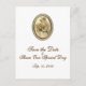 Schöne Vintage Save the Date Karte im Golddruck. Drucken auf der Rückseite ist schwarz