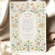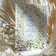 Genießen Sie Ihren besonderen Tag mit dieser eleganten Hochzeitssuite mit zeitlosem Blumendesign. Die Vorderseite der Einladung zeigt einen wunderschönen Rahmen mit stilisierten gelben Blüten, zarten grünen Blätter und staubblauen Blattakzenten, die alle den Einladungstext elegant umreißen. Die Blüten, die an Hundsholz oder eine ähnliche delikate Blume erinnern, schaffen ein sanftes, romantisches Ambiente. Das Blumendesign umgibt den Text in einem zarten Rahmen mit goldener Kante. Die Rückseite, perfekt für "The Finer Details", setzt das Thema mit dem gleichen atemberaubenden Blumenrahmen fort und bietet einen einheitlichen Look in der gesamten Suite. Das Design wird in einer sanften Aquarelltechnik dargestellt, die der klassischen Ästhetik eine Touch künstlerischen Flairs hinzufügt. Diese Einladung eignet sich ideal für eine Hochzeit im Frühjahr oder Sommer, eine Gartenfeier oder für ein Paar, das ein schönes, romantisches und leicht elegantes Einladungs-Design sucht.