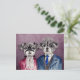 Das ist ein Aquarellbild eines Mops und eine Mischung aus Gängen aus Brussel und Poodle Hunden mit Vintager Kleidung. Der Mops trägt ein lila oder magentafarbenes Kleid mit Spitzentüchern und Perlen. Der Greifen der Brussel trägt einen dunkelblauen und grauen Anzug. Er trägt auch ein Monokel.