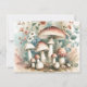 Elegante whimsical romantische Hütte Kern Pastellfarben verblasste Jahrgang Hochzeit Save the Date Karte mit Pilzen und Blume mit Braun, Lilfen und Grüntönen.