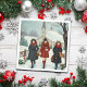 Vintage Illustration Menschen gehen zur Kirche Serviette