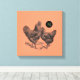 Vintage Darstellung von Hahn und Henne. Maßgeschneiderte Leinwand mit Monogramm in einem schwarzen Kreis. Ideal für Hähnchenliebhaber. Sie können Text (Schriftart, Größe, Farbe und Position) und Hintergrundfarbe leicht ändern, indem Sie auf die Schaltfläche Personalisieren oder anpassen klicken. Vergessen Sie nicht die ganze Sammlung von Leinwand mit Vintager Illustration.