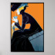 Dies ist meine Version eines wunderschönen Vintagen Jugendstil-Drucks eines unbekannten Künstlers, der ursprünglich ein Werbeplakat für den Marco Polo Tea Room in München war. Das Gemälde zeigt eine exquisit gekleidete junge Frau mit blonden Haaren, die aus einer blauen China des Marco-Polo-Tees knistern. Sie trägt ein elegantes Kleid mit einem hohen Halsband und extravaganten Hut mit blauen Rose und schwarzen Federn. Sie sitzt auf einem blauen Ledersofa und sieht sehr eckig aus. Der Hintergrund ist lebhaft orange. Das Plakat wäre das ideale Geschenk für Bewunderer des Jugendstils, der Vintagen Kunst und Teetrinker!