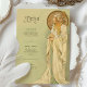 Diese atemberaubende Jugendstil-inspirierte Hochzeitskarte kombiniert luxuriöse goldene Farbtöne mit sanften Creme- und Beige-Akzenten und schafft ein elegantes und zeitloses Design. An der Vorderseite befindet sich eine aufwändige Figur mit fließenden Gewölben, goldenen Verzierungen und einem strahlenden, runden, mit kunstvollen Mustern verzierten Halo. Der Rücken hebt das Menü in einem raffinierten Serif-Schriftart hervor, der mit der Vintagen Ästhetik harmoniert. Dieses Design eignet sich ideal für Hochzeiten mit klassischen, Vintagen oder goldenen Themen und bietet eine raffinierte Touch von Kunst und Eleganz. Die warme, gedämpfte Palette und die exquisiten Details machen diese Karte zu einem einzigartigen Zuhause für Ihre Veranstaltung.