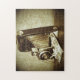 Phantastisches Stillleben Rätsel einer alten Vintagen Kamera. Spaß und einzigartiges Design für einen Tag des Rätsels.