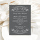 Dekorative Wirbel und Schnörkel umrahmen dieses Vintage, inspirierte Hochzeitsdesign. Dunkle Holzkohle, grau und weiß. Personalisieren Sie den benutzerdefinierten Text für Ihre Ehezeremonie und Ihren Empfang.