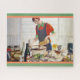 Lovely vintage picture illustration of a lady busy in her kitchen with lot of ingredients for her baking