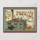 Große Vintage Darstellung der Köche in der Küche. Der Koch ist am Ofen, während der unter Koch seine Kochtechniken beobachtet. Ein anderer Koch bereitet den Nachtisch zu. Wunderbarer Blick auf eine Vintage Küche.
