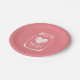 Korallenrosa Papier Party Teller mit Hochzeitsmonogramm plus Ehedatum. Anpassbare Farbe und personalisieren den Namen Anfangsbuchstaben von Braut und Bräutigam. Elegante Typografie im rustikalen, schicken Maurerglas-Design. Niedliches romantisches Design mit Vintagem Herzsymbol. Symbol für verblichene Liebe Teller für Hochzeit, Brautparty, Verlobung, ido Grillen, Jubiläum oder Junggeselinnen-Abschied. Anpassbare Hintergrundfarbe. Ideal für Hochzeiten im Freien im Sommer um Juli, August, September.