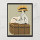 Jugendstil-Abbildung einer Frau mit einem großen Hut, Hutschachtel und großem Kofferraum. Reisen Sie nie Licht, wenn Sie alle Ihre Kleidung mitbringen müssen.