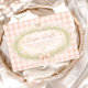 A soft vintage baby shower design inspired by classic storybook illustrations. Gentle wildflowers form a delicate wreath around a sweet lamb, finished with a blush ribbon bow and a warm gingham background that adds a cozy nursery feel. The airy watercolor style and muted pastel palette create an elegant yet whimsical aesthetic perfect for celebrating a new arrival. Designed for parents who love timeless, cottagecore-inspired baby shower themes with delicate botanical details.