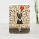3D-digitale Darstellung eines wunderschönen Teenagermädchens, das einen roten Ballon in einer Herzform auf einem Hintergrund aus Stein hält, altes Foto und Farbtoneffekt. Valentinstag-Geschenk