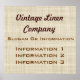 Berufliches und elegantes cooles Plakatdruckzeichen mit Retro-Vintagem Stoffmuster. Dieses Plakatzeichen passt zu den gängigen Visitenkarten. Hellbraune und beige Farbtöne mit subtilen Streifen. Einfach eigene, benutzerdefinierte Informationen in den angegebenen stylischen Schriftart hinzufügen oder den Schriftart-Stil und die Farbe ändern, falls gewünscht. Beachten Sie, dass dieses realistische Design ist auf Papier gedruckt, ist nicht wirklich Leinen. Dargestellt ist ein großes 32" x 30" großes Schild, das auch in beliebiger Größe kleiner erworben werden kann.