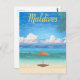 Vintage Malediven Tropical Beach Parasol Postkarte