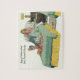 Vintage Abbildung Muttertagsdesign mit dem Vater, der im Bett frühstückt, während Mama am Telefon klatscht und ihre Tochter mit einer Puppe auf ihrem Bett spielt.