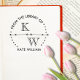Custom Ex Libris Briefmarke verfügt über einen Vintagen Rahmen mit einem Monogramm und klassischen serifenlosen Schriftart. Personalisieren Sie dieses wunderschöne Monogramm aus der Bibliothek der Briefmarke aus Gummi nach Maß mit Ihrem Namen.