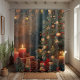 This curtain captures the deep, moody aesthetic of a classic winter night, contrasted with the brilliant color of stacked wrapped gifts and the deep green of pine boughs and pinecones. It gives that quiet, sacred feeling of the Christmas season—perfect for anyone who dreams of a traditional, rustic Christmas or a sophisticated vintage holiday look.