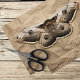 Ein Vintager Motte auf einem geflochtenen Kraftpapier-Hintergrund - ideal für ein besonderes Geschenk oder für den Einsatz in Ihrem nächsten Junk Journal oder Kunsthandwerk.