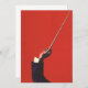 Vintages Illustrationsmusikdesign mit Arm und Hand eines Dirigenten, der einen Stab hält, der bereit ist, eine klassische musikalische Performance zu steuern. Auf einem roten Hintergrund.