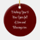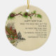 Auf diesem Neujahrsschmuck ist ein hübsches, Vintages Bild einer Zuhause im Winter mit einem Ast voller Kiefernfüße zu sehen. Die Vorderseite des Ornaments zeigt ein glückliches neues Jahr Gedicht und die Rückseite des Ornaments lautet: "Einen Neujahrsfest voller Liebe und Segnungen wünschen". Dieses Ornament macht eine schöne Dekoration auf Ihrem Weihnachtsbaum oder geben als Geschenk!