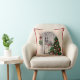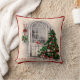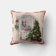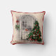 Coussin avec une vitrine vintage de Noël du sapin de Noël et des lumières brillant la nuit par une belle fenêtre.