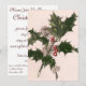 Illustration vintage Era victorienne Joyeux Noël design avec une branche fleurie avec des feuilles saints, des baies rouges et des fleurs roses. Fleur d'hiver traditionnelle. Joyeuses vacances et Bonnes Fêtes !