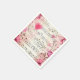 Papierservietten in elegantem und nostalgischem Design. Musikblatt mit einem großen rosa Herz und rosa Rosen und Wildblumen am Rand.