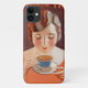 Ein wunderschönes Bild von einer Frau, die eine warme Tasse Tee oder Kaffee trinkt, die ein orangefarbenes Shirt trägt, das mit einem glänzenden, stylischen Haar der 20er und 30er Jahre geschmückt ist. Elegantes Vintages Gemälde für die Kunstliebhaber des Dekos oder die Teestunde. www.CuteComfy.com . Dieses Design ist als komplette Kollektion mit Bekleidung, Trinkbehälter, Accessoires, einzigartigen Geschenken und mehr! KLICKEN SIE HIER, um alle Matching Items anzuzeigen
