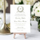 Vintage elegante Olive-Leaf-Kranz-Monogramm Einladung Hochzeit Vorlage. Traditionelle Vorlage für Hochzeitsfeiern. Elegante Script Kalligrafie Einladung Hochzeit. Vintages Oak Leaf Wreath Wedding Monogram Wappen Einladung