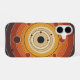 Retro illustration of layered orbital rings in a warm and soothing palette.