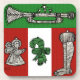 Vintage Ornamente Weihnachtskarten mit einer einzigartigen Keller Kard Schöpfung eines Strumpfs, Engels, Trompete und Bonbons im Vintagen Stil und in den wahren Weihnachtsfarben Rot und Grün. Dekorieren Sie Ihre Zuhause, die Mailboxen Ihres Freundes oder füllen Sie diese Weihnachtsgeschichten mit einem originalen Linoleum-Blockdruckdesign und genießen Sie in diesem Jahr eine dekorative Retro-Urlaubssaison!