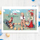 Vintage, süße Bauernkinder mit Korb von Ostereiern und niedlicher Geflügelfamilie.