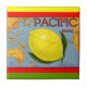 Vintager Werbungserzeugnis-Kistenaufkleber für pazifische Marken-Frucht-Erzeugnis ~ Keramik-Akzentfliese. Genießen Sie Fliese u. Dank für das Kurz aufhalten bei!
