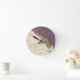 Designed to match the wedding einladung Suite of the same name, this elegant and sophisticated personalized wedding or anniversary clock is a wonderful modern but vintage design. It's perfekte for a bridal shower or wedding gift! Mixing Vintage art elemente and contemporary watercolor art work hand painted by Audrey Jeanne Roberts gives a beautiful and timeless quality to this design. A stately Peacock rest upon elegant etched swirls and looking towards a very subtle hand painted damask with plum purple d it. You can custom color this clock. The background color can be change to any color you want, either from the drop down menu or use any color hex# and put it int the bottom right corner box on the drop down color menu. If you need help, we're happy to do this for you.