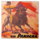 Dieses Design wurde mit einem Poster nach dem 2. Weltkrieg entworfen, das die Werbeaktion des Reisens nach der chaotischen Zeit markiert. Dieses warme, farbige Plakatdesign wurde entworfen, um Menschen über Panagra Air nach Peru zu locken. In diesem Design springt der kräftige Stier auf den Stierkämpfer, der elegant und selbstbewusst die rote Muleta anhebt. Die Wirkung des Stiers und die Bewegung des Stoffes sind so schnell und kraftvoll, dass das Peripheriegerät der Bilder verschwommen wird. PERU via PANAGRA ist oben und unten im Design in fett rotem Text zu finden. Wir haben eine Produktsammlung mit diesem Design erstellt, das als "Vintage Peru Via Panagra Travel Collection" bezeichnet wird.