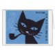 Vintager polnischer Streichholzschachtelaufkleber, der eine wunderliche Katze raucht ein Rohr darstellt.