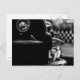 Eine Postkarte mit einem Schwarz-Weiß-Foto eines Vintagen Pontiac-Fender.