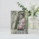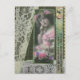 Foto einer Stoffpostkarte, ein Vintage-Bild eines Mädchens, und â€oeif behielt ich ein grünes Husten in meinem Herzen, dann wird der singende Vogel kommen -€ auf der Außenseite. Spitzen und Knöpfe erscheinen um das alte Foto herum.