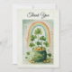 Thank you card with a seasonal St. Patrick's Day image. Faded grunge style paper. A green pot of gold with coins