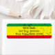 Rastafarian Flag Reggae Musik personalisierte Rücksendeadressen-Aufkleber. Benutzerdefinierte Aufkleber mit Rasta-Flag und Ihrem Text. Vintage Typografie-Vorlage. Gelbe und rote Streifen. Spaß für Geburtstagsparty, GRILLEN, Feiern, Hochzeit und vieles mehr.