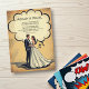 Dieses elegante Comic im Buchstil lädt zu einer modernen Hochzeit ein. Das Retro-Design zeichnet sich durch eine Vintage Braut- und Bräutigam-Illustration und eine schwarze Kalligraphie auf einem alten Papierhintergrund aus.