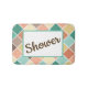 Step out of the shower in style with this colorful bathmat that features a fun retro-style diamond pattern with customizable text that says, "Shower." Modify the text with your own sentiment to create a one-of-a-kind gift for new homeowners, a unique accessory for your own home, or a fun addition to a dorm room shower.