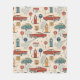 Rustic travel-inspired pattern blanket featuring old-style cars, vintage road signs, leaves, and retro adventure elements in a charming countryside style. Ideal for road trip lovers, vintage enthusiasts, travelers, and anyone who loves nostalgic travel aesthetics.