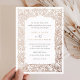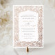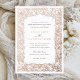 Vintage elegante Weinreben an der Grenze Rose Gold Foil Einladung Hochzeit. Traditionelle Hochzeitseinladung. Elegante Script Kalligrafie Einladung Hochzeit. Viktorianische Zierrahmen mit Blätter und Zweigen