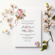 Diese elegante und schicke Hochzeitseinladung wird durch die Vintage Zeit inspiriert, aber mit subtilen Hauch von modernem Einfluss. Es ist mit einem schönen, rosa Blumenmuster auf einem einfachen weißen Hintergrund gestaltet. Dieses böhmische Arrangements Blume Bouquet Design wird ein großer Hit mit all Ihren Gästen.