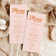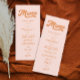 Ideal für ein Retro-Hochzeitsthema, das eine trendige Hochzeitsvibe einfängt. Dieses Boho Disco Hochzeitsmenü fügt eine Touch von disco Hochzeitsfeier Flair hinzu, die die Retro Hochzeitsästhesie mit eklektischen Hochzeitselementen verstärkt. Ideal für eine Hochzeit oder eine Hippie-Hochzeit, die pfirsichfarbene Hochzeit und das Thema Hochzeit bei Sonnenuntergang harmonieren nahtlos. Genießen Sie das pfirsichfarbene Hochzeitstil für eine Kirchenfeier oder eine tropische Hochzeit mit einer Hochzeitsfeier auf Zitrusfrüchten. Das orange und rosa Hochzeitsmenü Anzug Sommerhochzeiten und Hochzeiten im Spätsommer. Ideal für Hochzeiten im Herbst und Hochzeiten im Herbst, das rosa und orangefarbene Hochzeitstil strahlt hell aus.