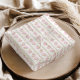 Dieses Seidenpapier zeigt zarte rosa Rosen und sanfte Grüntöne in einem klassischen, gestreiften Vintage-Design. Der helle, neutrale Hintergrund sorgt für ein sauberes, elegantes und vielseitiges Aussehen.