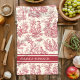 Vintages, rotes Handtuch aus Jouy bedrucktem Küchentuch. Dieses Vintage Küchenhandtuch wird durch die exquisiten Designs französischer Landschaftsbilder inspiriert. Die schönen, eleganten und raffinierten Toilabdrücke sind im Augenblick ein Alltagswut. Die Designs sind klassisch und romantisch mit stilvollen Farben. Das perfekte Geschenk zum Geburtstag, Valentinstag, Weihnachten oder zu jeder anderen Gelegenheit.